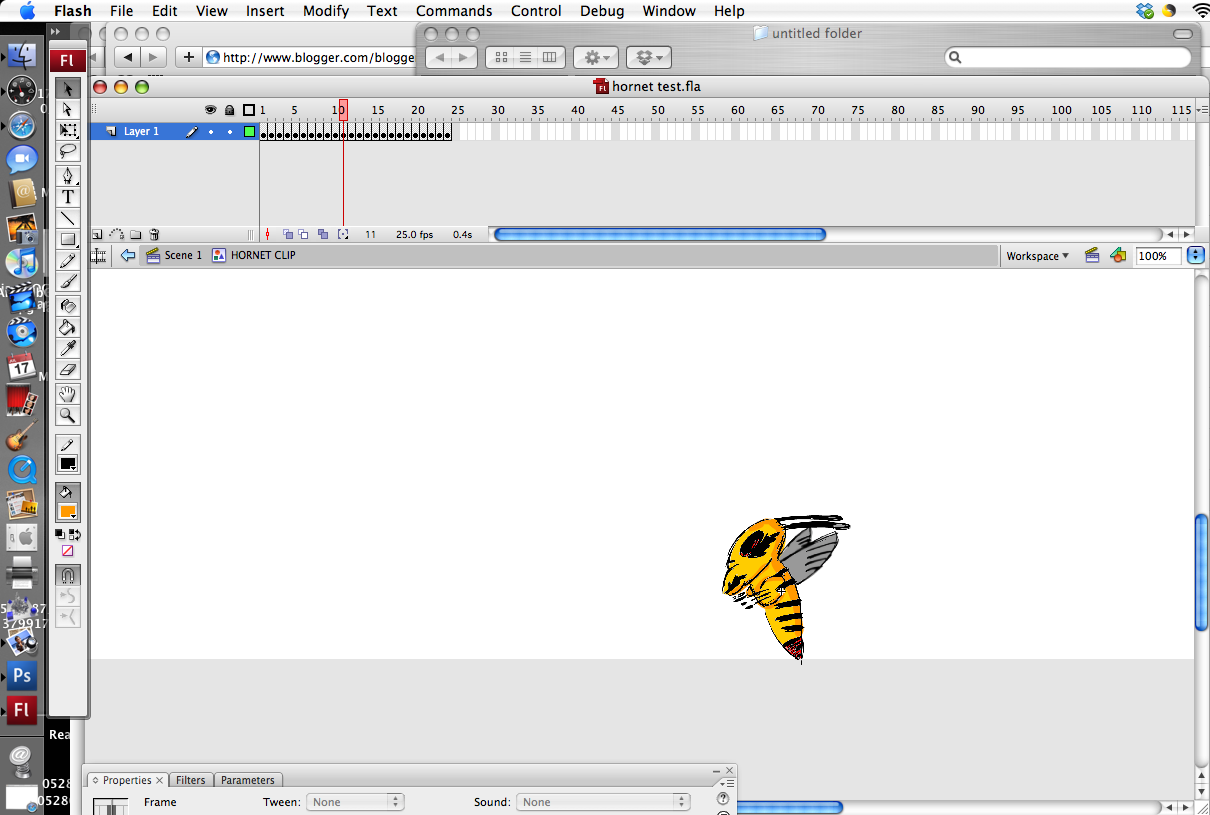 After I done this, I went back into Flash. Shrink the Hornet a little bit more and added some colour to give the final animation below.